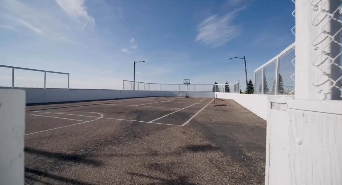 Community Centre, school building/gym, sports ground, tennis court, playground, bowling alley